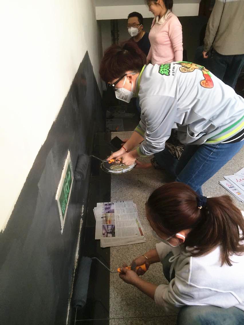 师生党员利用周四下午的思想政治学习时间,对院墙进行美化。在美化的过程中,师生分工合作,配合默契,细致认真,干劲十足。老师们先用砂纸将艺术楼和音乐馆走廊墙体上的污渍打磨掉,然后用灰色涂料粉刷了艺术楼C区楼梯间的墙裙。学生们在各位老师的带领下,凝聚力量,齐心协力将院内墙壁整理干净,不仅美化了教学环境,而且从中体会到了劳动带来的无限满足与快乐。虽然很累,但师生党员仍用饱满的热情去劳动,很快就让走廊的墙体又恢复了往日的洁白,让探花视频