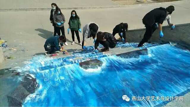 遇到问题大家积极献策,第一天工作效果颇好,第二天我们再接再厉,材料不够,为了绘画效果更好,大家就自掏腰包弥补不足。惹不少人驻足欣赏,我们也乐在其中。当然,过程之中,老师也给予不少建议与指导,我们在不断的调整,致力于做出更出色的东西来,为艺院增添氛围,我们内心是兴奋的!