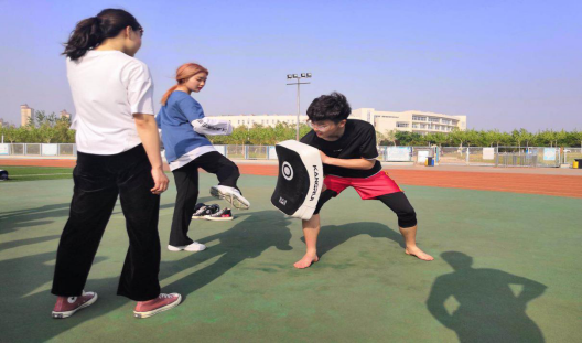 散打队队长进行现场教学,活动中对不同散打动作示范教学,有教有学,吸引在场同学观摩与演练,通过亲身参与进一步提升健康素养,将阳光的运动理念代代相传。