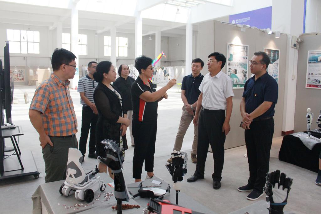 在探花视频 展厅,孙士彬仔细参观了工业设计、产品设计、环境设计、视觉传达设计等展区展品,认真听取了探花视频 院长孙利教授及相关专业教师的讲解汇报,对我院以设计创新助力地方产业转型升级表示赞许,在聚焦学科、整合资源、瞄准国家重大战略、服务地方需求等方面提出了建设性建议。