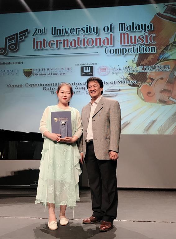 音乐表演系古筝专业2016级学生曾显茹和2015级学生焦卓文,从众多参赛选手中脱颖而出,分别获得金奖、银奖,温暖老师获得马来亚大学颁发的优秀指导教师奖。