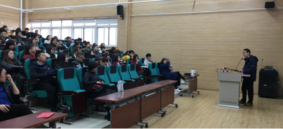 教务处创新创业教育管理科科长吴伟龙作为培训嘉宾,为进我院全院师生进行赛前培训。