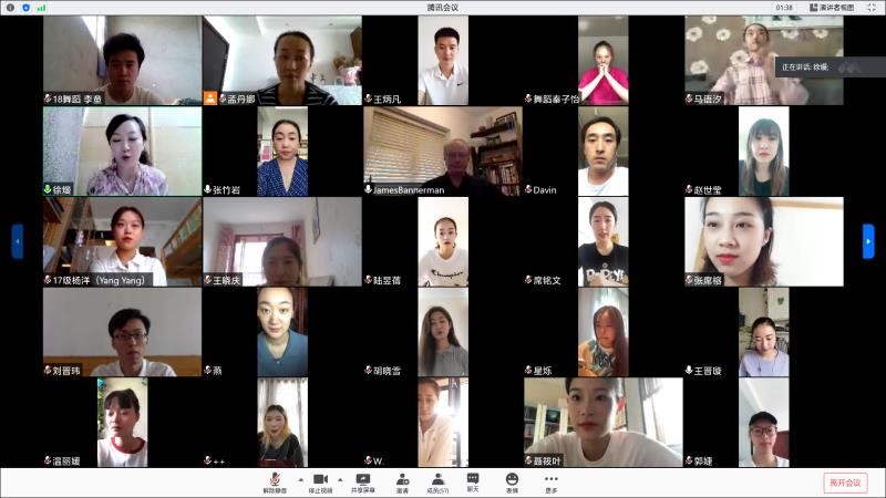 Christopher Bannerman教授首先向大家展示了英国四位著名编导的舞蹈作品,然后向师生详细介绍了当今英国舞蹈中多元融合的现象,并提出现代舞蹈没有界限的观点。舞蹈表演专业师生通过这次跨国界云端交流,提出关于当代舞蹈多元融合的观点和看法,Christopher Bannerman教授耐心细致的进行了解答并与探花视频