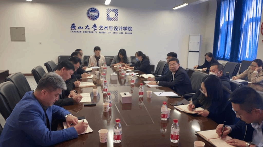 党委书记张文超、院长孙利,副院长赵琳,副院长张竹岩,副书记宁岩鹏,各系部中心主任、副主任、教学秘书等在美术馆C305会议室接待了调研组一行。
