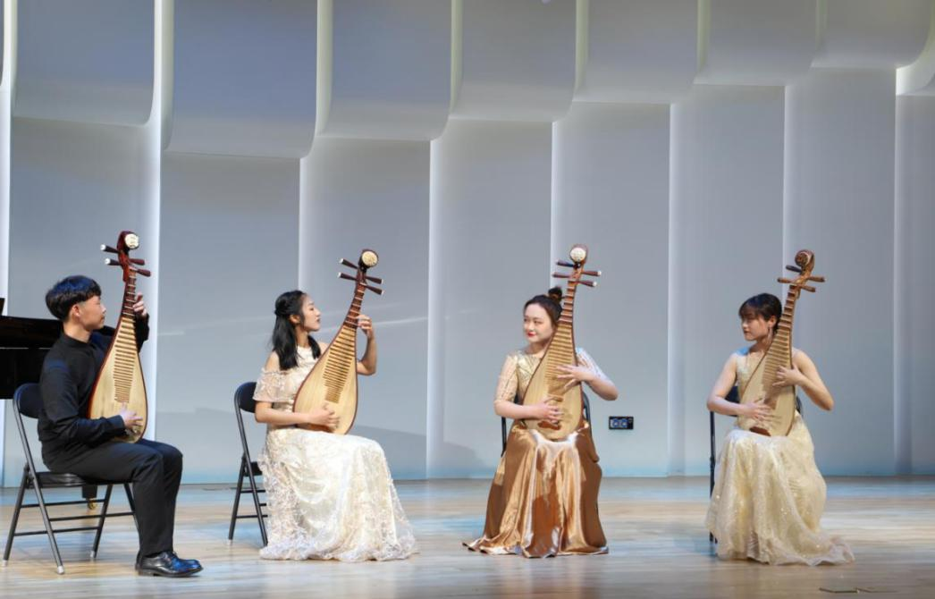 2017级音乐表演专业声乐、钢琴、手风琴、小提琴、大提琴、双排键、古筝、琵琶、二胡、扬琴专业的体学生参加了演出,演出作品形式多样、异彩纷呈,音乐表演专业全体教师对学生的作品进行了精心的指导。同学们在音乐会上的精彩演绎体现了较高的艺术水准,达到了预期的效果。同学们通过音乐会演出表达了浓浓的师生情、同学情和母校情,为中国共产党百年华诞献上美好的祝福!
