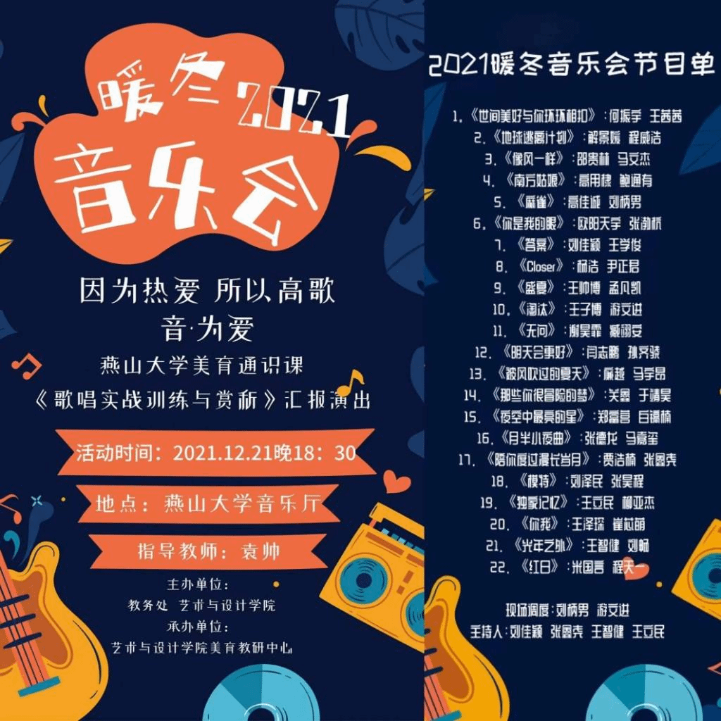 美育教研中心承办的美育通识课“暖冬音乐会”于2021年12月21日晚6:30于探花视频