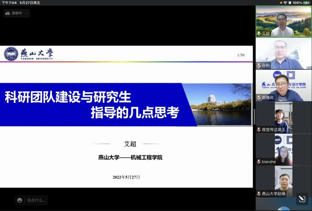 5月27日,学院邀请机械工程学院机电控制工程系主任艾超教授,为全体硕导以及青年教师做了题为“科研团队与研究生指导的几点思考”的讲座。讲座由孙利院长主持。