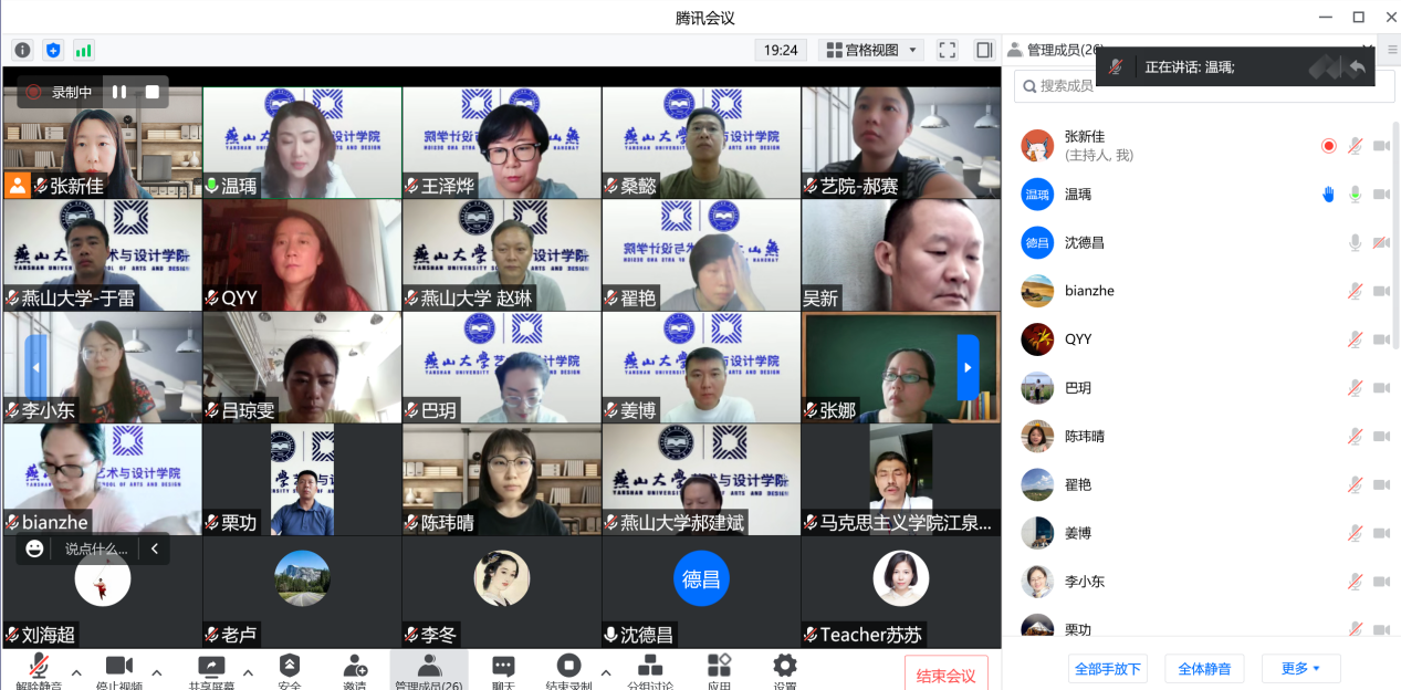 环境设计系主任温瑀老师和中国近现代史纲要教研部主任沈德昌老师联合主持了本次活动。两位基层教学组织负责人对各自专业的与会教师和基本情况进行了介绍。