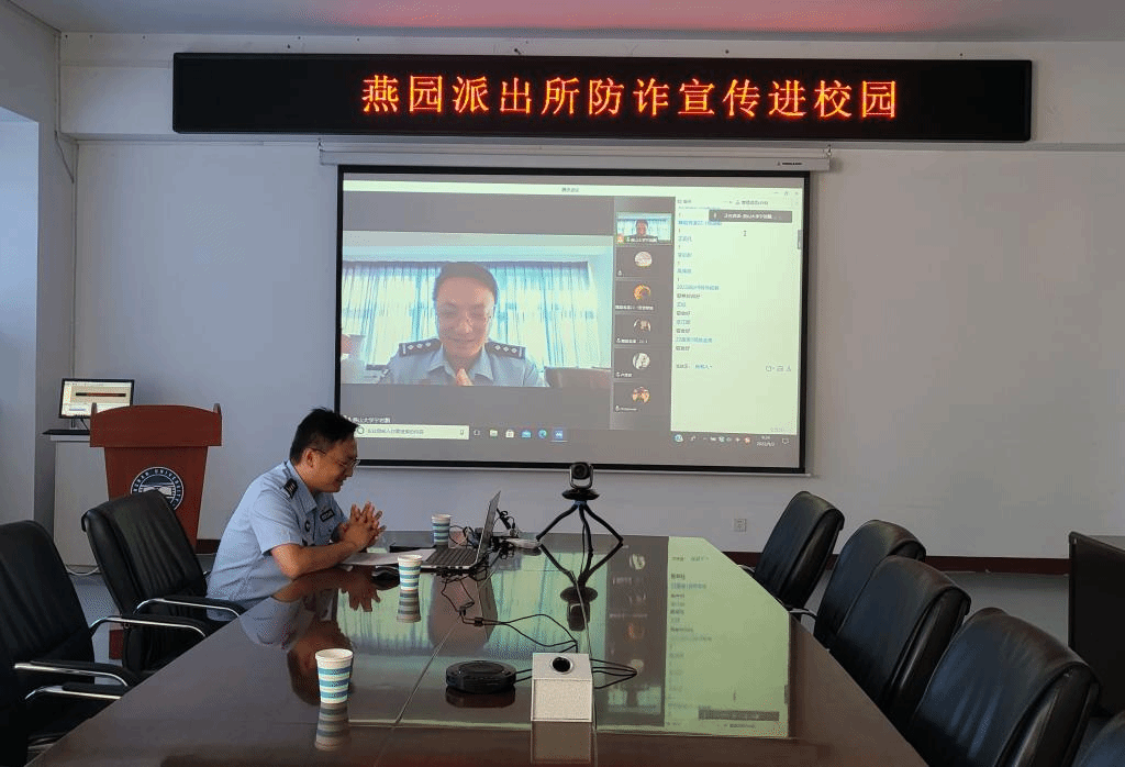 邀请燕园派出所田拓警官来到学院,通过线上方式为同学们开展防电信诈骗安全讲座。学院2022级本科、研究生全体同学,部分学生家长参加了活动。