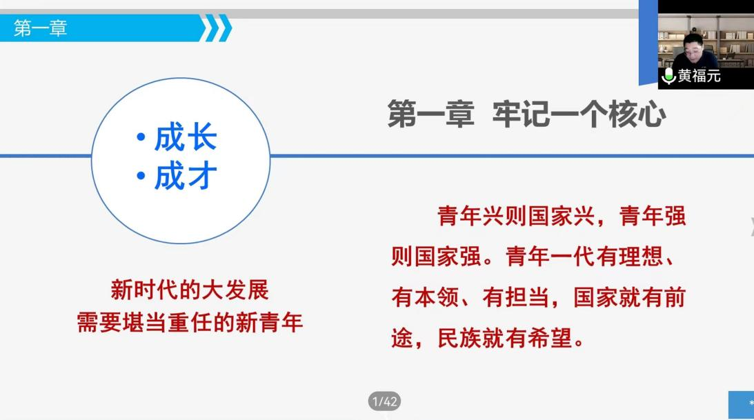 邀请河北师范大学副教授、全国辅导员年度人物提名奖获得者黄福元为2022级新同学开展入学教育讲座。学院2022级全体新同学通过网络形式聆听了讲座,讲座由学院党委副书记宁岩鹏主持。