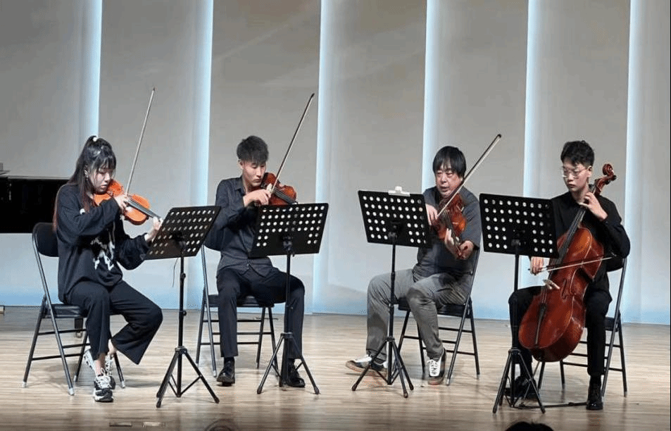 首先,岂老师详细介绍了交响乐团的形式、各种乐器的配置以及声部结构的原理。同学们与岂老师展开积极互动,了解交响乐团发展动态。随后岂老师讲解了莫扎特《G大调弦乐小夜曲》的音乐特征,从音准、节拍到运弓等方面结合演奏实践进行深入讲解。并与小提琴专业杨江东、邓至善同学,大提琴专业周君宇同学合作、进行了细致的示范演奏。岂老师精湛的演奏与精彩的讲座给同学们留下深刻印象。