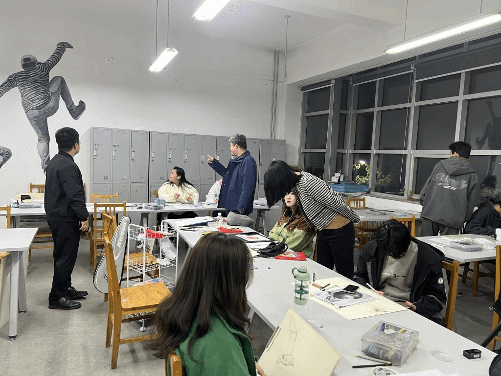 10月17日,宁岩鹏、驻校辅导员盖鸿章、丁旺龙、闫佳宁走访学院47间设计类专业教室和96间师生琴房。在专业教室,老师们检查用电用水安全,纠正同学们用电安全隐患,督促同学们保持好教室卫生,发挥班级力量营造教室特色文化。了解同学们的学习情况,与同学们一起交流学习、考研和就业等。在学生琴房,老师们查看琴房管理系统的使用情况,及时解决管理系统存在的问题,协调同学们办理琴房卡解锁事宜等。与同学们一起交流专业知识,参与同学们排练,了解大家的学习情况。