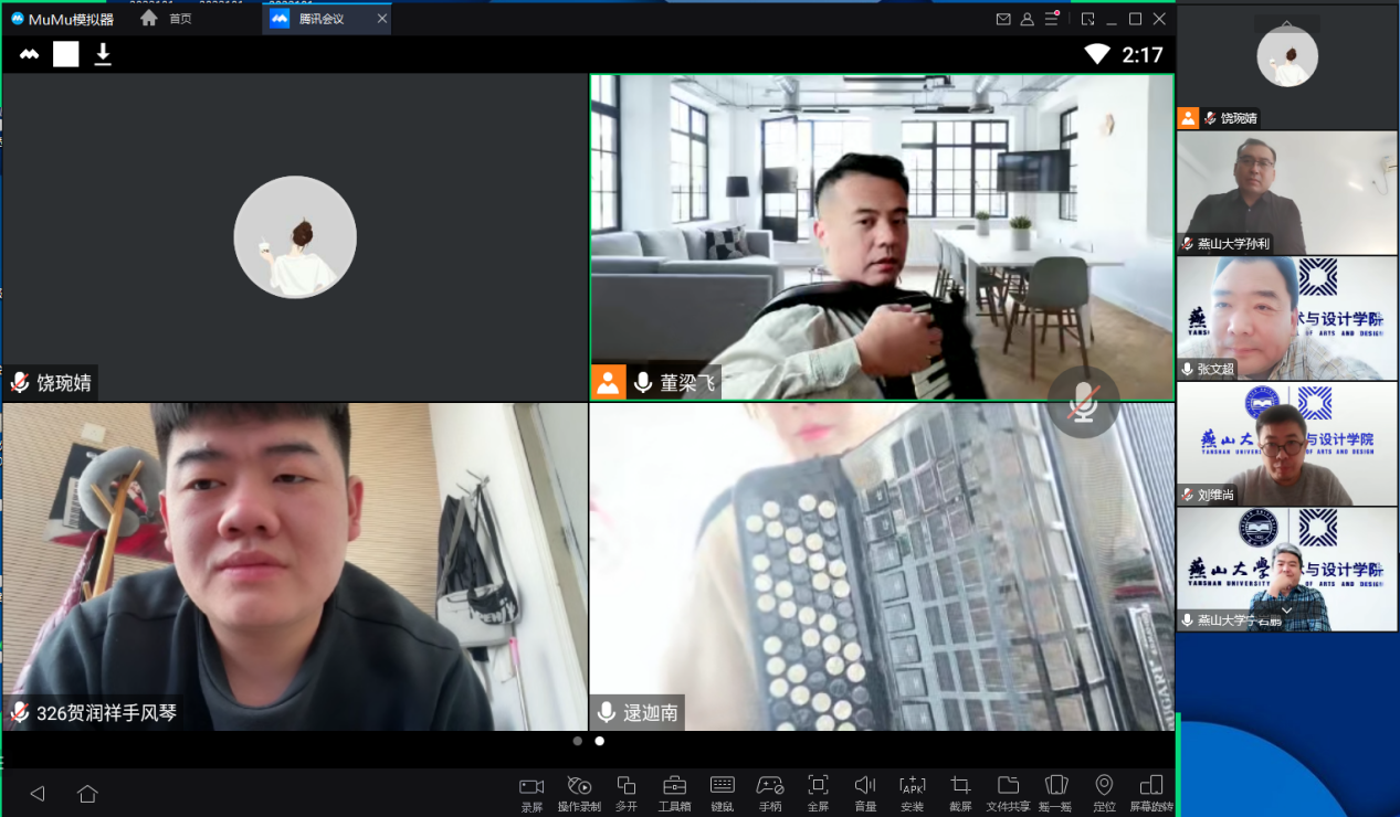 开展本学期第二次集中线上教学专项检查。院长孙利、党委书记张文超、副院长赵琳、副院长刘维尚、党委副书记宁岩鹏等学院领导班子成员,特邀教务处金海龙处长深入课堂,开展线上听课督导活动,本次听课覆盖了音乐表演、舞蹈表演、环境设计和工业设计4个专业,8门专业课程。