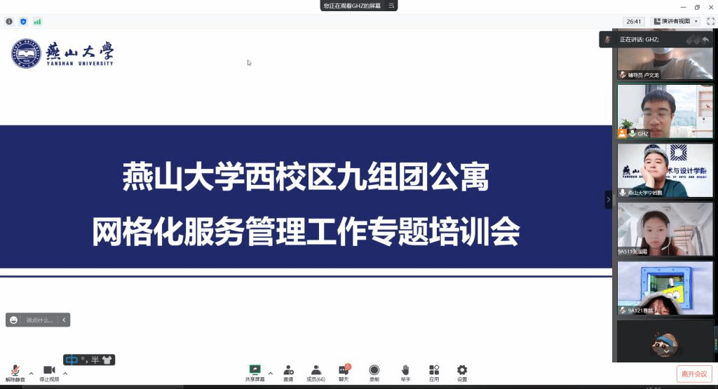 为严格落实学校疫情防控要求,扎实推进网格化服务管理工作,强化西校区九组团公寓网格员的工作意识、工作能力,筑牢疫情防控的保障力量。11月12日,西校区九组团网格化工作团队针对疫情防控背景下的网格化工作通过腾讯会议召开专题培训会议。西校区九组团公寓网络化工作负责人、探花视频