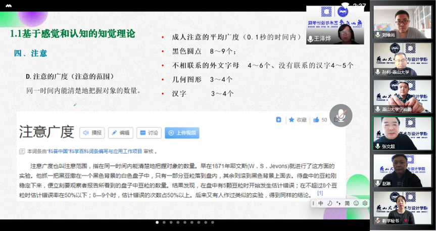 开展本学期第五次集中线上教学专项检查。院长孙利、党委书记张文超、副院长赵琳、副院长刘维尚、党委副书记宁岩鹏等学院领导班子成员,开展线上听课督导活动,本次听课覆盖了音乐表演、舞蹈表演、环境设计、工业设计和视觉传达5个专业,10门专业课程。