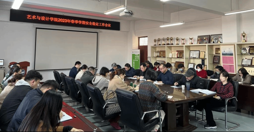 在美术馆C305召开2023年春季学期安全稳定工作会。党委书记张文超主持会议,学院领导班子全体成员、科级秘书、专职组织员、各党支部书记、系部中心主任及副主任参会。