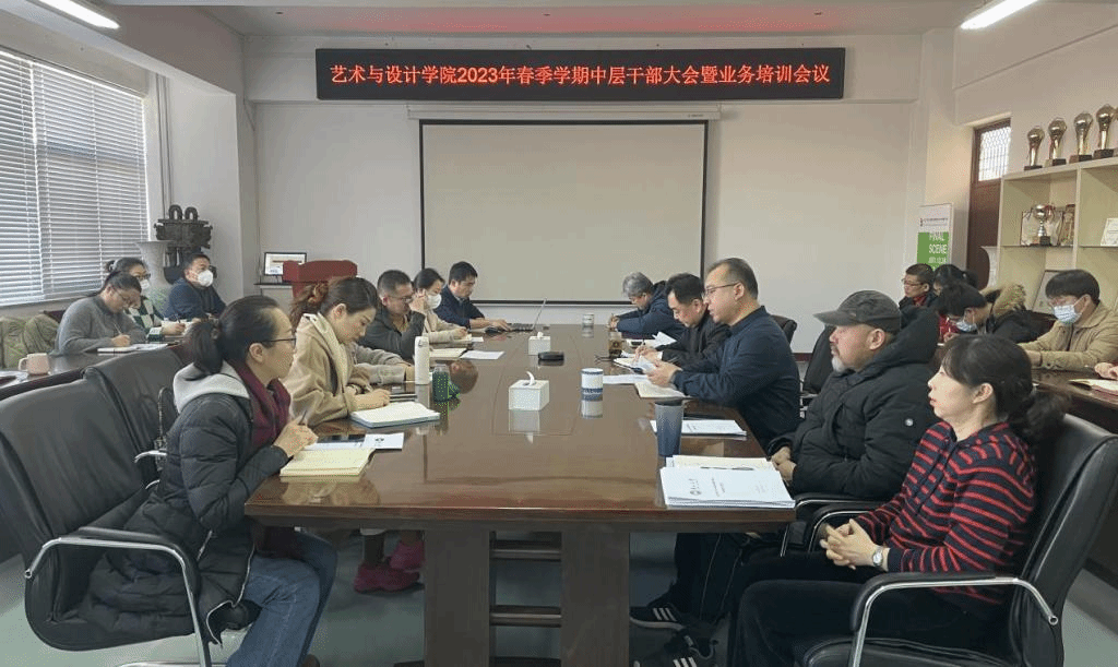 党委在美术馆C305召开2023年春季学期中层干部会暨业务培训会议。院长孙利主持会议,学院领导班子全体成员、科级秘书、各党支部书记、系部中心主任及副主任参会。