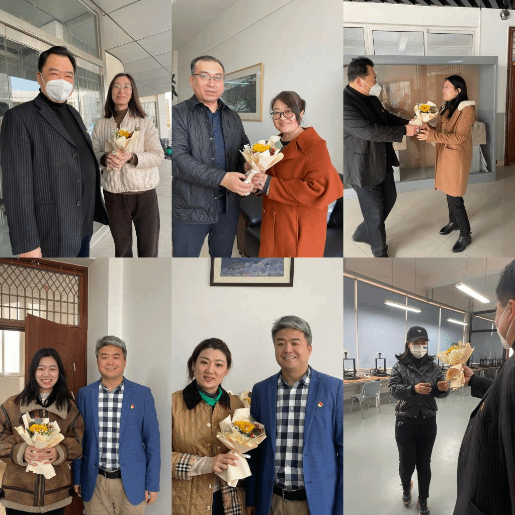 学院党委书记张文超、孙利一行来到课堂、工作室、办公岗位,为工作中的女教工送上鲜花,表达节日的祝福,祝愿女教工们节日快乐,健康幸福,青春永驻;表达学院的由衷敬意,感谢学院女教工在学院事业发展过程中付出辛苦,做出的贡献;听取女教工对于学院发展和服务教职工的意见建议,共同为推行学院工作发展贡献力量。