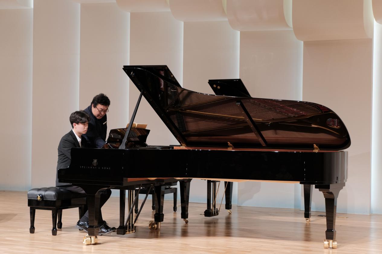 大师课上,我院钢琴专业李洋帆、牛星予、侯昌浩和钟晴4名学生先后演奏了肖邦《雨滴前奏曲》、贝多芬奏鸣曲《热情》第一乐章、李斯特练习曲《英雄》以及张朝的《皮黄》。崔鸿根先生针对每首钢琴作品的风格特点,分别从节奏控制、音色处理、乐曲结构、情感表达等方面对每位学生进行了一对一的细致指导与深入浅出的讲解,内容充实丰富、讲解详尽全面,并提供了切实有效的练习建议,分享了个人的艺术理念、演奏经验与心得体会。崔鸿根先生对待专业一丝不苟、精益求精的态度让在场观众受益匪浅、收获良多。