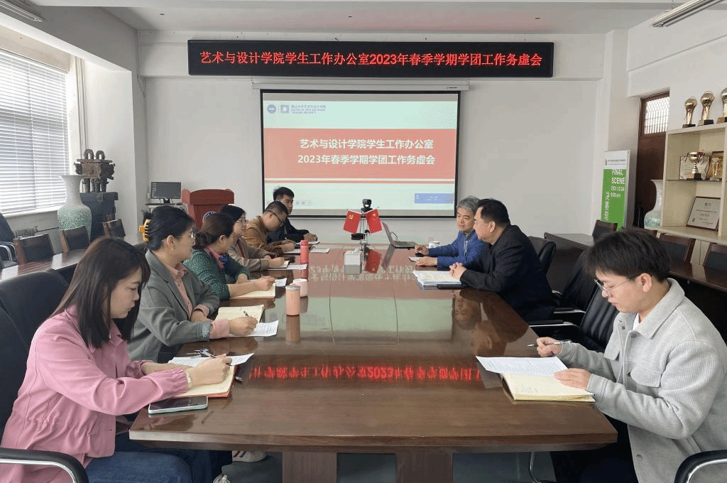 在美术馆C305召开2023年春季学期学团工作务虚会。学院党委书记张文超、党委副书记宁岩鹏、学院全体辅导员参加会议。会议由宁岩鹏主持。