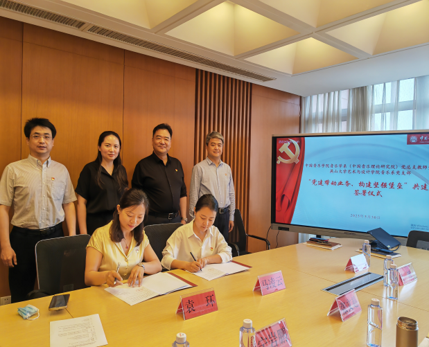 党委书记张文超、党委副书记宁岩鹏、音乐系党支部书记马凌云和辅导员盖鸿章一行4人于北京中国音乐学院办公楼613会议室与中国音乐学院音乐学系(中国音乐理论研究院)教师党支部签署了党建共建协议,中国音乐学院音乐学系党总支书记肖明、音乐学系党总支副书记王琢、音乐学系教师党支部书记袁环参加了签署仪式并进行深入座谈和交流。