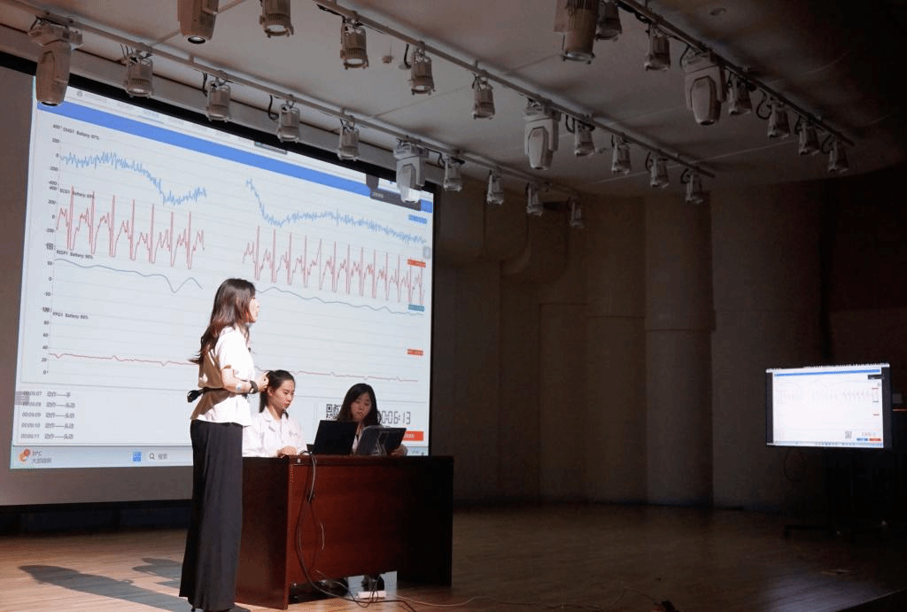 首次打破音乐与科学融合的新领域,成功举办“音工交叉科研实证音乐会”。在实证音乐会演出过程中,采用ErgoLAB人因生理记录仪进行实时、准确地记录,并将生理数据实时通过大屏幕呈示给现场观众。借助生物反馈技术和数据可视化的形式,表演者被试杨丹将自己的生理信号转变为音乐会中独特的元素,并与音乐表演进行实时融合,调节其的心理、行为及表演。研究人员还针对表演者制定了为期一周的生物反馈训练,于同一地点举办对照组可以有效验证生物反馈在音乐表演中的实际效应量。