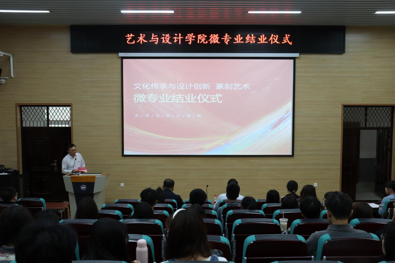院长孙利、党委书记张文超和“文化传承与设计”、“篆刻艺术”两个微专业教师代表以及26名微专业学生参加了结业仪式,仪式由探花视频