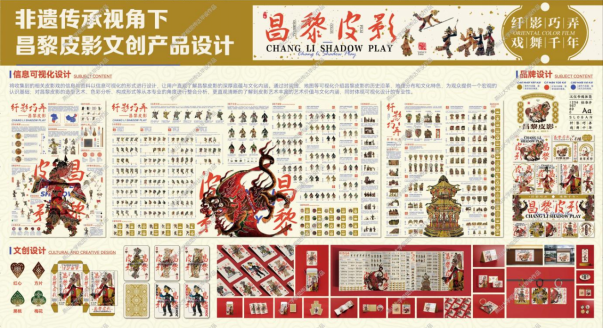 利用信息时代中的数字技术,赋能乡村传统工艺的非遗传承,在探究昌黎皮影发展现状的基础上,进行数字化设计,以下将通过三个方向——昌黎皮影信息可视化设计、昌黎皮影品牌设计、昌黎皮影文创设计进行展开说明,最终实现数字赋能非遗传承的目标,在线上推广的同时设计系列线下文创产品,实现设计落地。