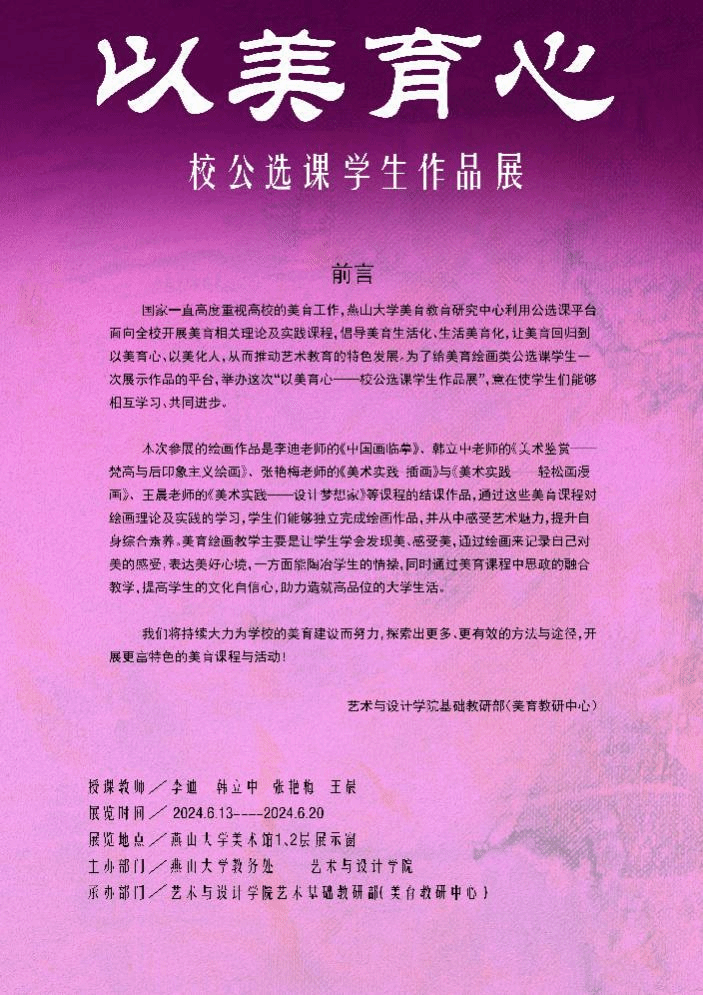 2024年6月13日,“以美育心”校公选课结课作品展在探花视频