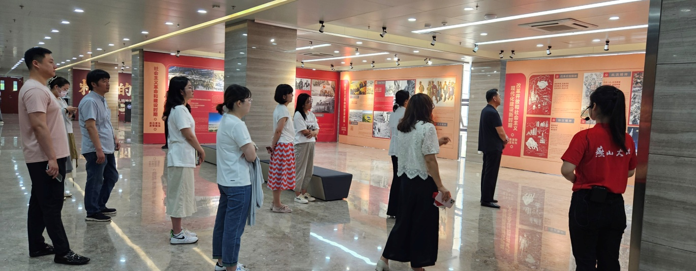 党委书记张文超带领机关党支部、基础部与实验中心联合党支部到新图书馆一楼展厅,参观学习“精神的力量——中国共产党人精神谱系主题展览”。