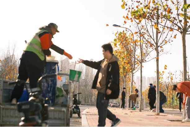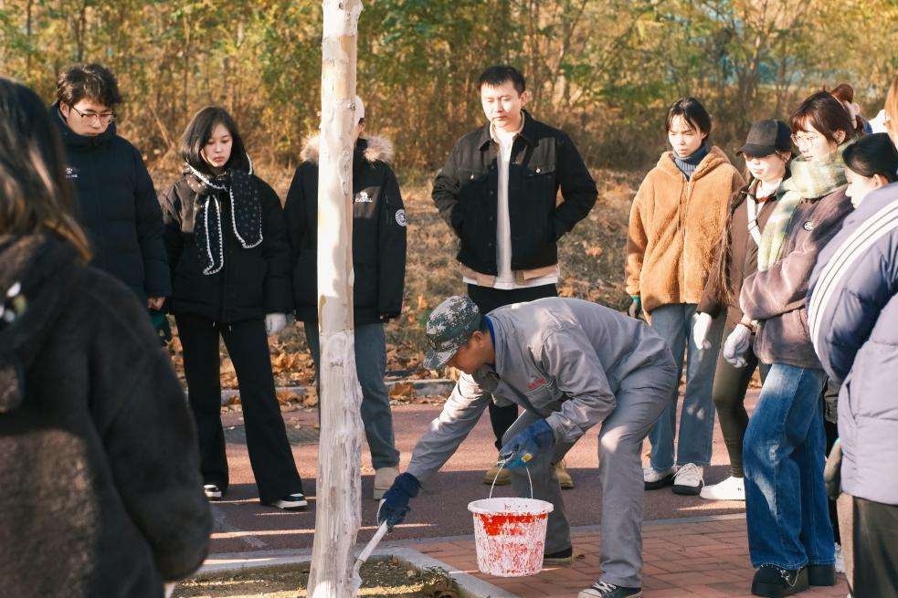当日下午,同学们从新图书馆后沿着西区两侧的道路,顺地势而下,在熟悉而美丽的校园里,修枝、粉刷、剪护,精心养护每一棵树木。晚秋的阳光洒在校园,映照着同学们专注的面庞,劳动的身影成为校园里一道亮丽的风景线。