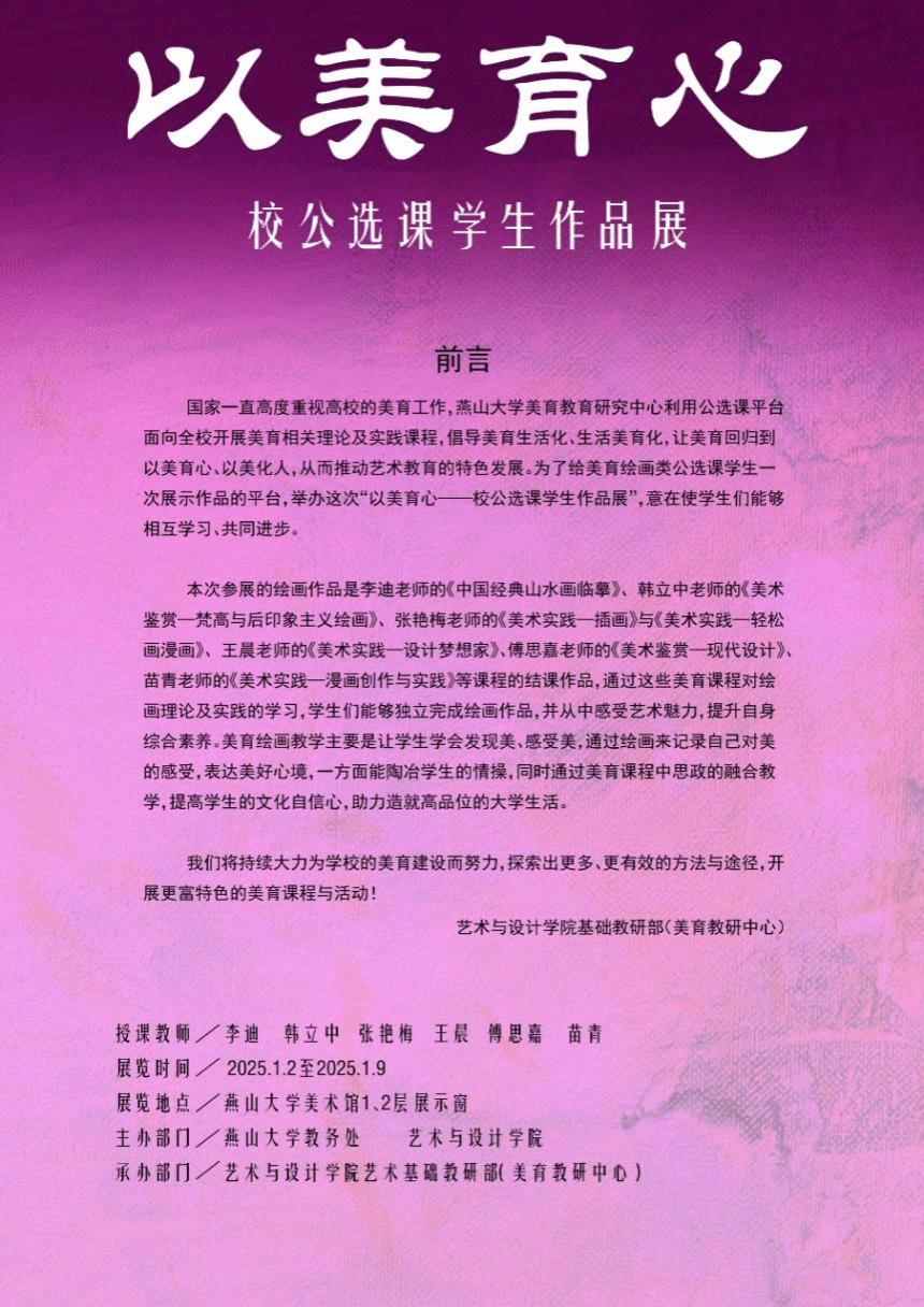 2025年1月2日,“以美育心”校公选课结课作品展在探花视频