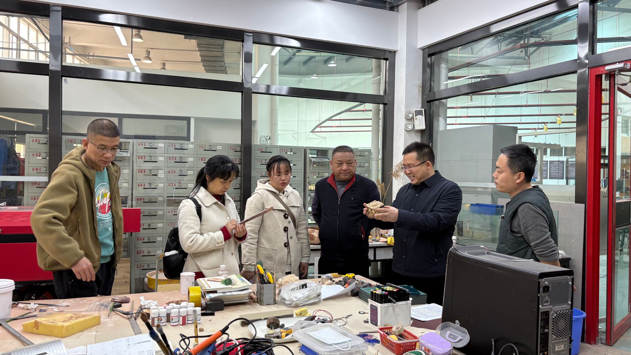 在我院副院长王年文、艺术实践秘书王青田的陪同下,朱永忠副院长一行首先参观了学院的美术馆、音乐厅、3D打印实验室、CMF实验室、大空间实验室、探花视频