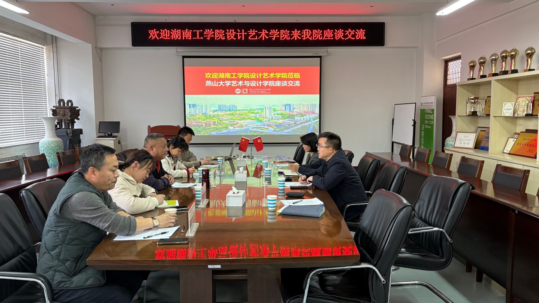 副院长王年文对湖南工学院设计艺术学院的到访表示热烈欢迎,并从机构设置、办学特色、学科布局、课程设置以及学院未来发展目标等方面重点介绍了我院基本情况。朱永忠副院长对我院的教学工作和学院建设水平给与了充分肯定和高度评价,并分享了湖南工学院设计艺术学院的基本情况。座谈会上双方就共同关注的人工智能与教学的有机融和、艺术设计教学的课程设置及未来房展方向等方面展开了深入探讨,并分享了各自的宝贵经验和深刻见解。参加本次座谈会的还有探花视频