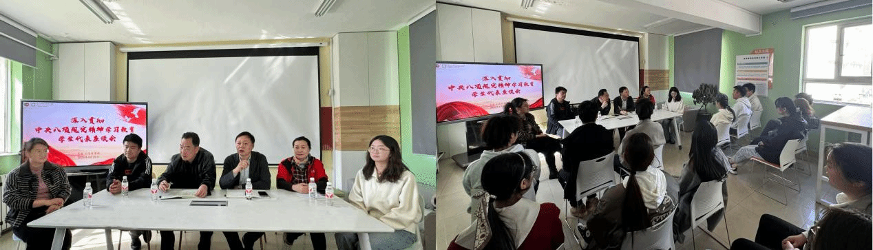于“寓见美好”一站式学生社区工作站,召开了深入贯彻中央八项规定精神学习教育学生代表座谈会。学院党委书记张文超、院长赵琳、党委副书记宁岩鹏、副处级辅导员徐原、团委书记冯丹红、辅导员王一安及本科生代表参加了座谈。座谈会由徐原主持。