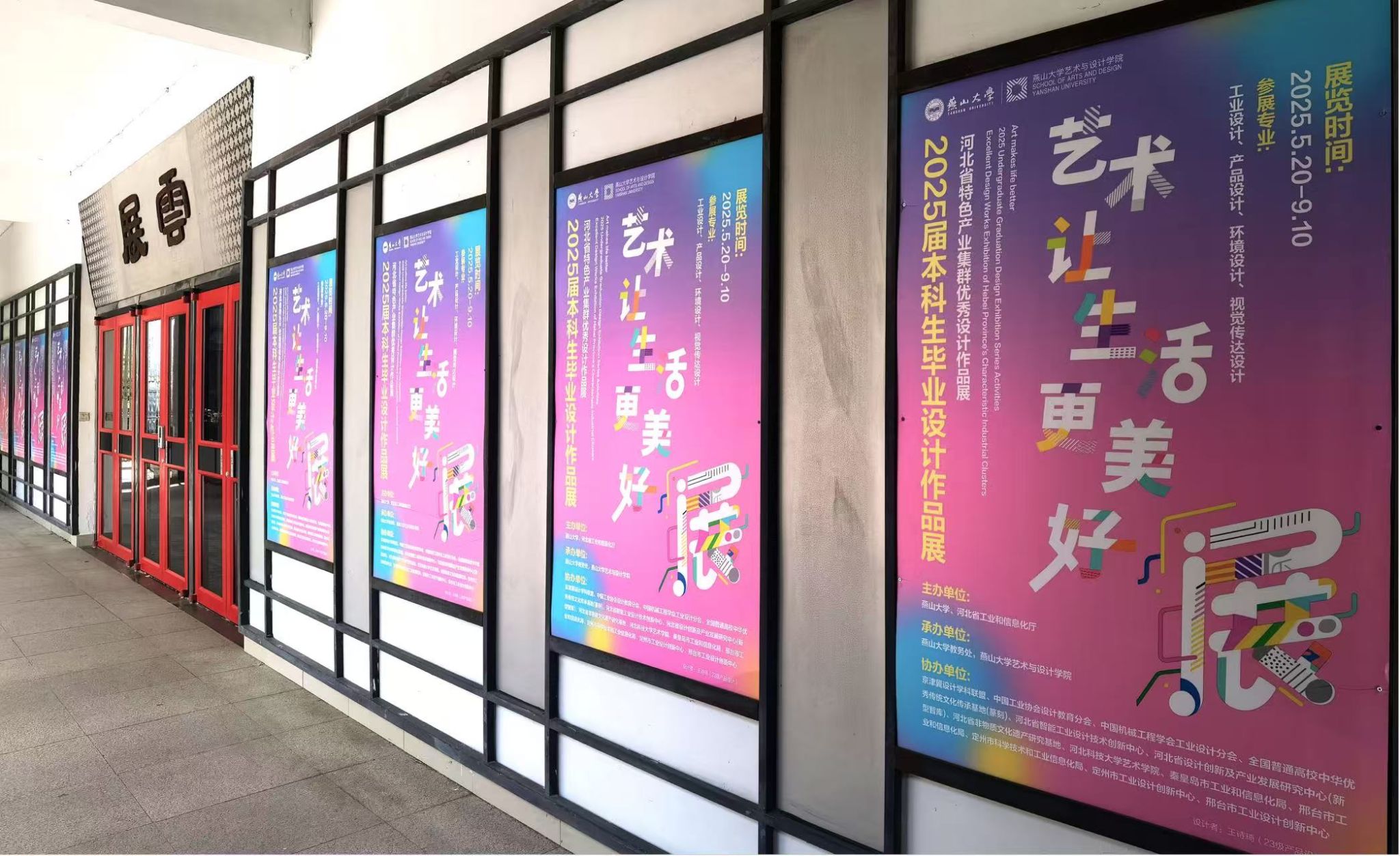 本次展览汇聚工业设计、产品设计、环境设计、视觉传达设计四个本科专业257名学生的优秀作品,更增设“河北省特色产业集群优秀设计作品展”板块,同步展出定州体育用品、邢台自行车童车产业集群130余幅赋能成果,并携手广汽集团等开展深度校企合作。从康养辅具、智慧交通等智能装备设计,到乡村振兴、城市更新的场景创新;从非遗传承的文化赋能,到服务民生的幸福提案,作品既延续 “艺术让生活更美好” 的核心理念,更以设计回应人工智能时代的产业变革,展现青年学子对社会现实的深刻洞察与未来生活的创想力。