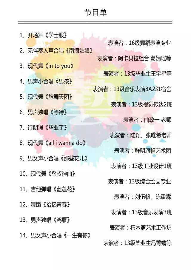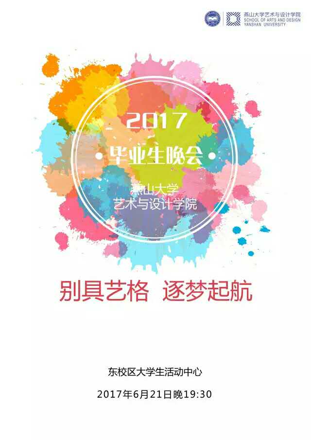 6月21日(周三)晚19:30,在东校区大学生活动中心举行“别具艺格、逐梦起航——探花视频 2017届毕业生晚会”。