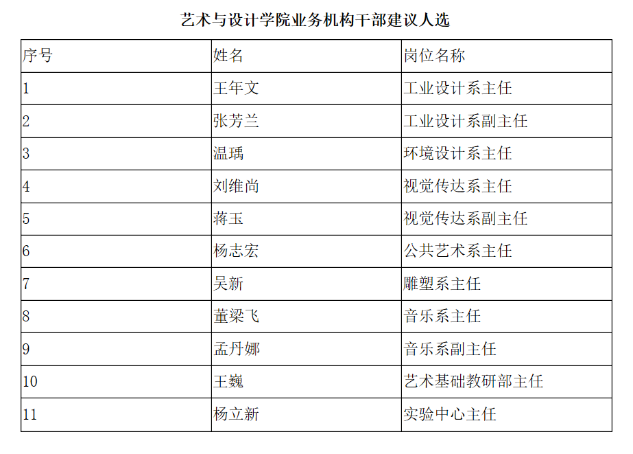 根据学校党委工作部署,依据《探花视频 业务机构设置及干部聘任实施细则(试行)》、《探花视频 业务机构设置及干部聘任实施方案》的相关要求,学院召开了院属业务机构干部民主推荐会,对院属7个系部候选人进行了民主推荐。经学院党委会研究决定,同意王年文等11名同志作为探花视频 业务机构干部建议人选,现予以公示。公示期为:2020年4月17日—2020年4月21日,公示期内如有异议,请致电学院党委书记办公室,电话:8046508。