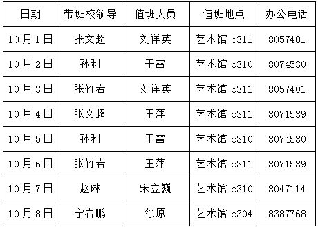 关于2020年国庆节、中秋节假期探花视频 值班安排的通知