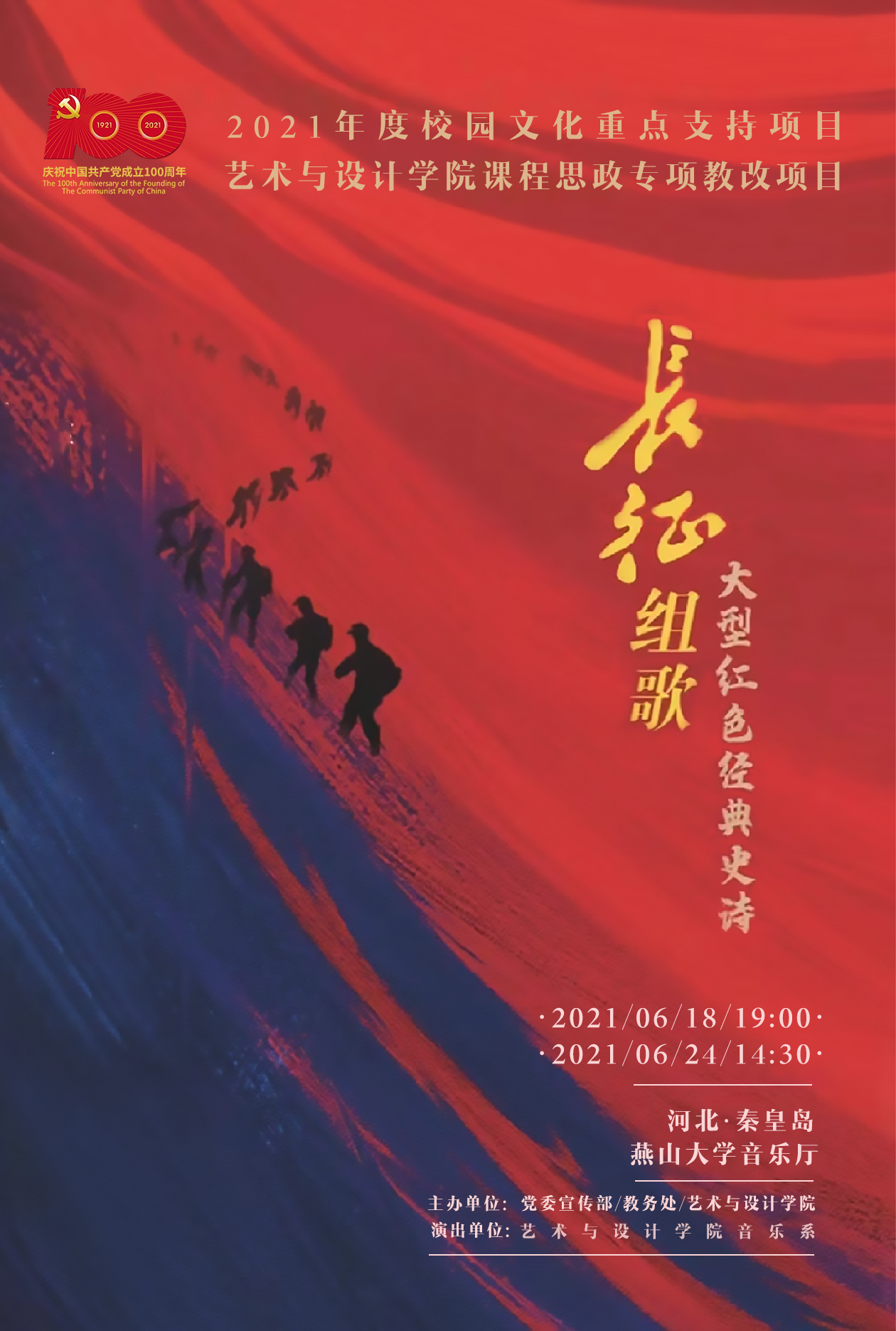 音乐系承办的大型红色经典史诗《长征组歌》将于6月18日(周五)晚19:30和6月24日(周四)下午14:30在探花视频