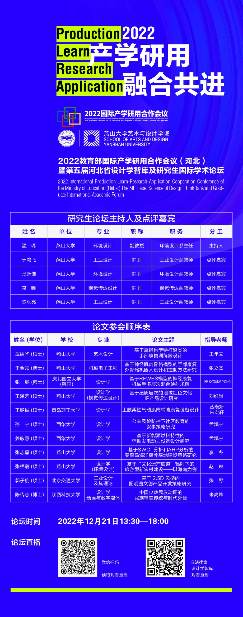 为深入学习贯彻党的二十大精神,进一步拓宽学院研究生的学术视野,启发研究生的科学思维,提升研究生的学术水平和创新能力,探花视频 定于2022年12月21日举办2022设计学研究生国际学术论坛。因疫情防控需要,本届论坛采用线上形式进行。