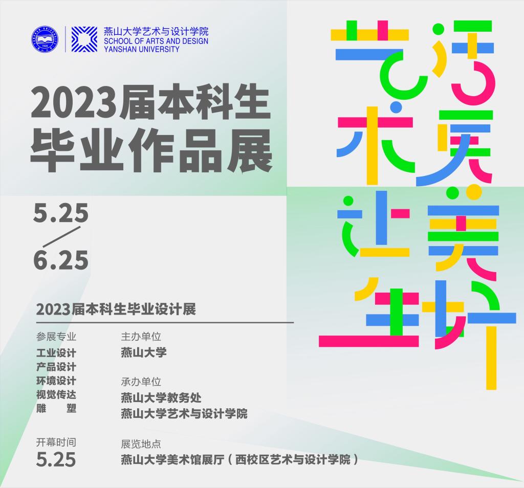 探花视频 将于2023年5月25日11:20举办“艺术让生活更美好”—2023届本科生毕业作品展开幕式。展览涵盖工业设计、产品设计、环境设计、视觉传达、雕塑五个专业(领域)本科生的毕业设计作品,凝聚了毕业生四年的创新成果和学习结晶,欢迎广大师生前来观展!