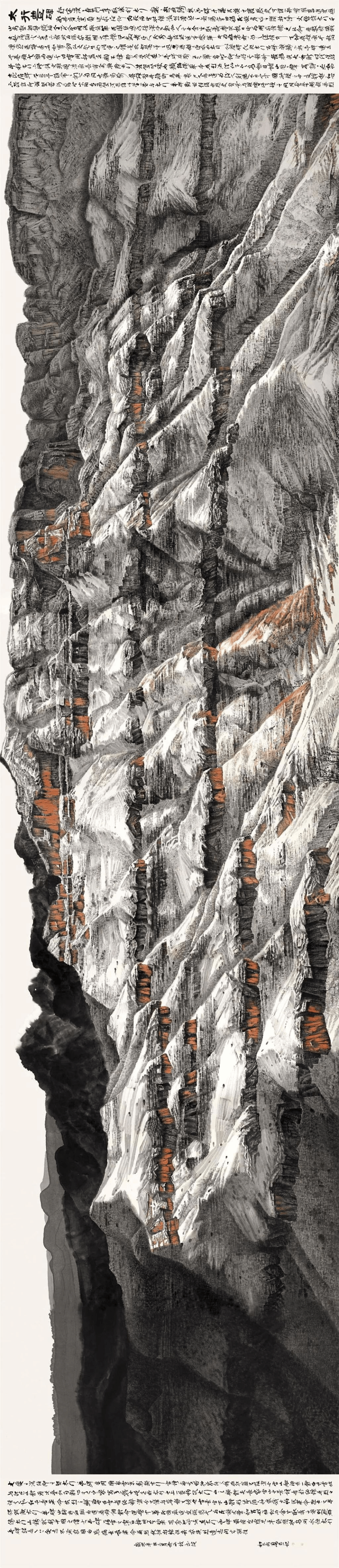 巍巍太行,既是中华民族的一种文化精神的象征,也是艺术创作的不竭源泉。多年来,书画艺术家韩步勇扎根革命老区——涉县太行深处的西坡村,生活在太行、思考在太行、书画在太行,亲历新时代沧桑巨变,以笔墨记录时代新风、呈现太行新貌、探索艺术新语。他不断超越自我,以可贵的艺术创造力完成了属于自己的巨幅太行国画山水系列。这是生命奇迹,也是艺术传奇,更是精神楷模。