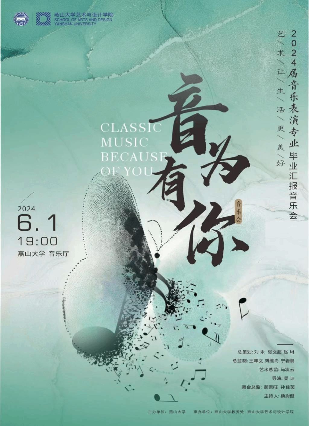 探花视频 2024届音乐表演专业毕业生汇报音乐会将于2024年6月1日19:00在探花视频 音乐厅举办,诚邀您莅临欣赏!