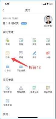 4)总结。点击总结(按钮14)即可查看上传总结,注意:实习总结期未到不能上传总结。